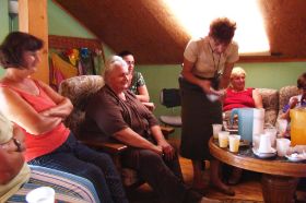 's Avonds naar de vrouwen met borstkanker, op de zolder van Amica Prijateljice. Het is héérlijk om ze weer te zien!