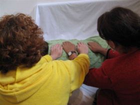 Samen behandelen met Nada, een Bosnische Reikimaster, die de hele week met ons mee is geweest.
